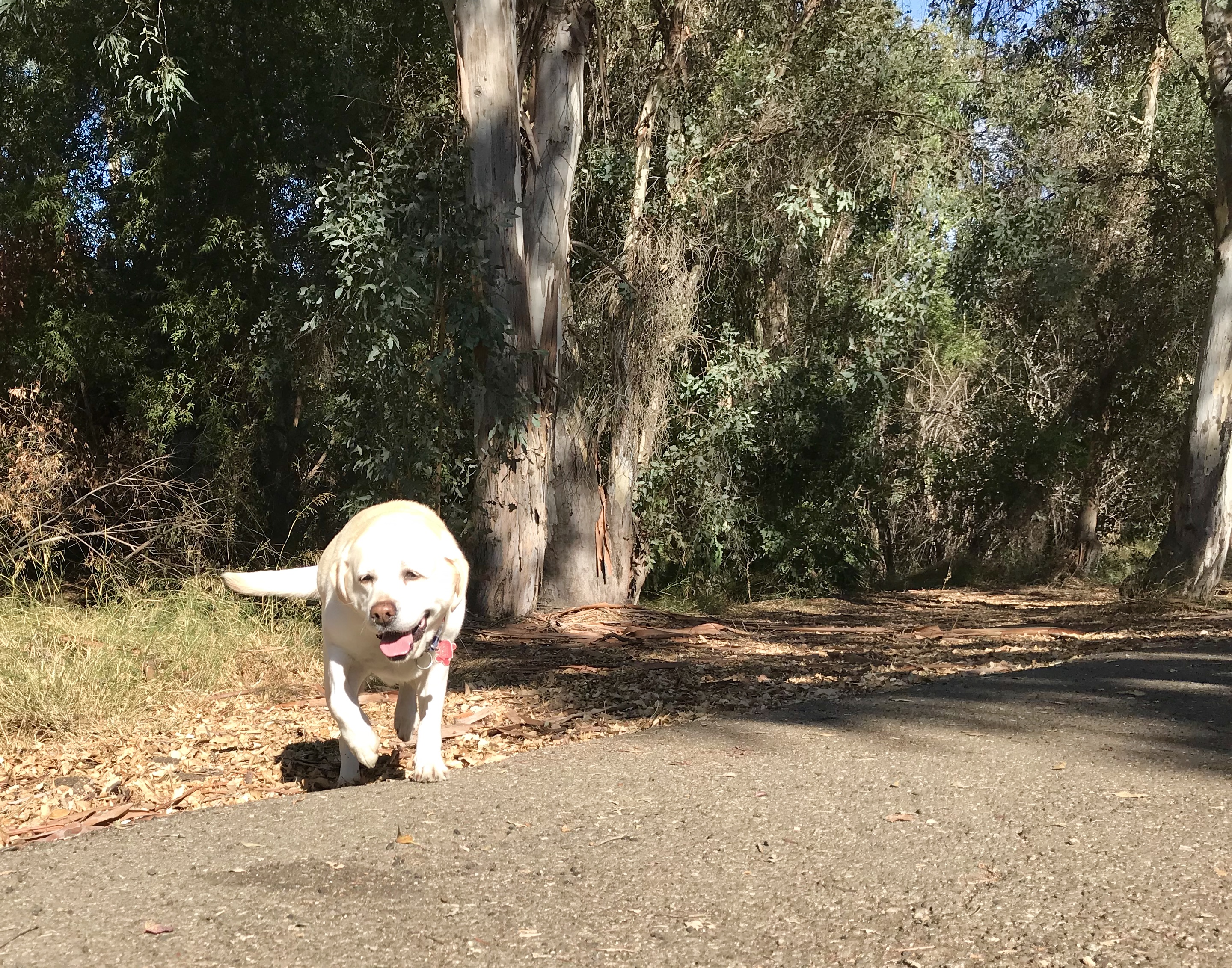 Molly and Moby Enjoying a Stroll Through the Wooded Trail
