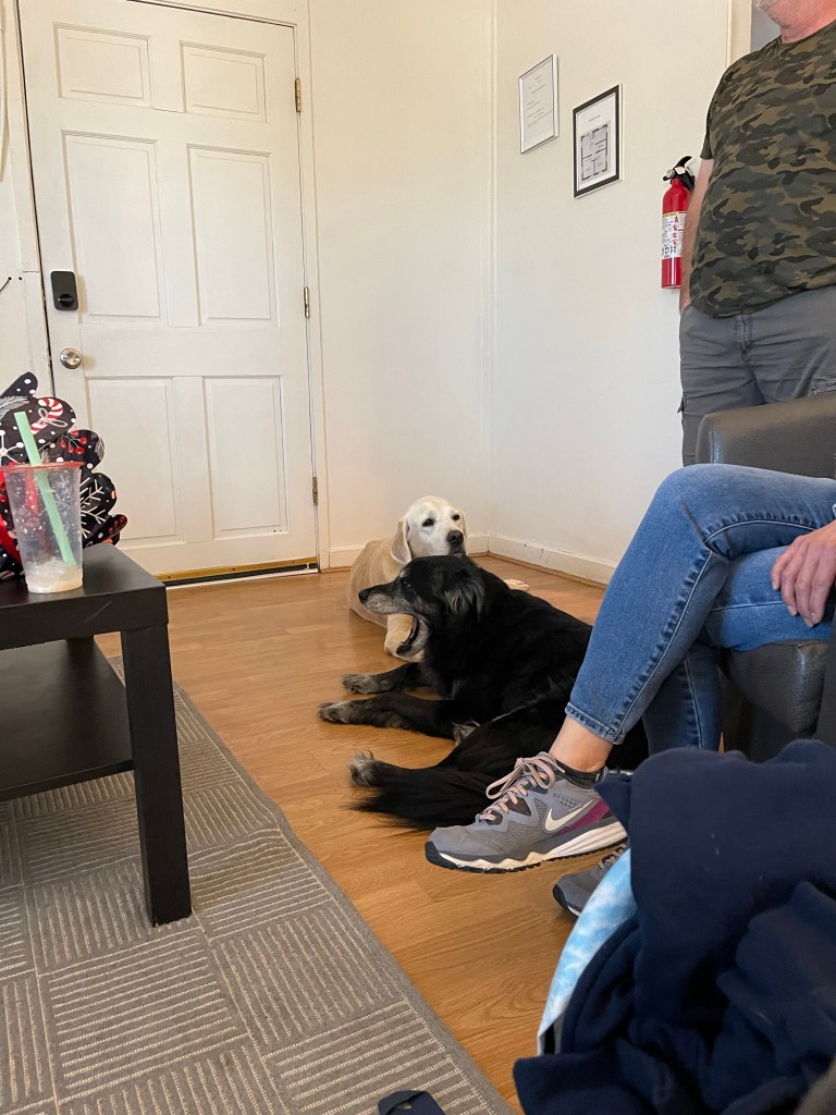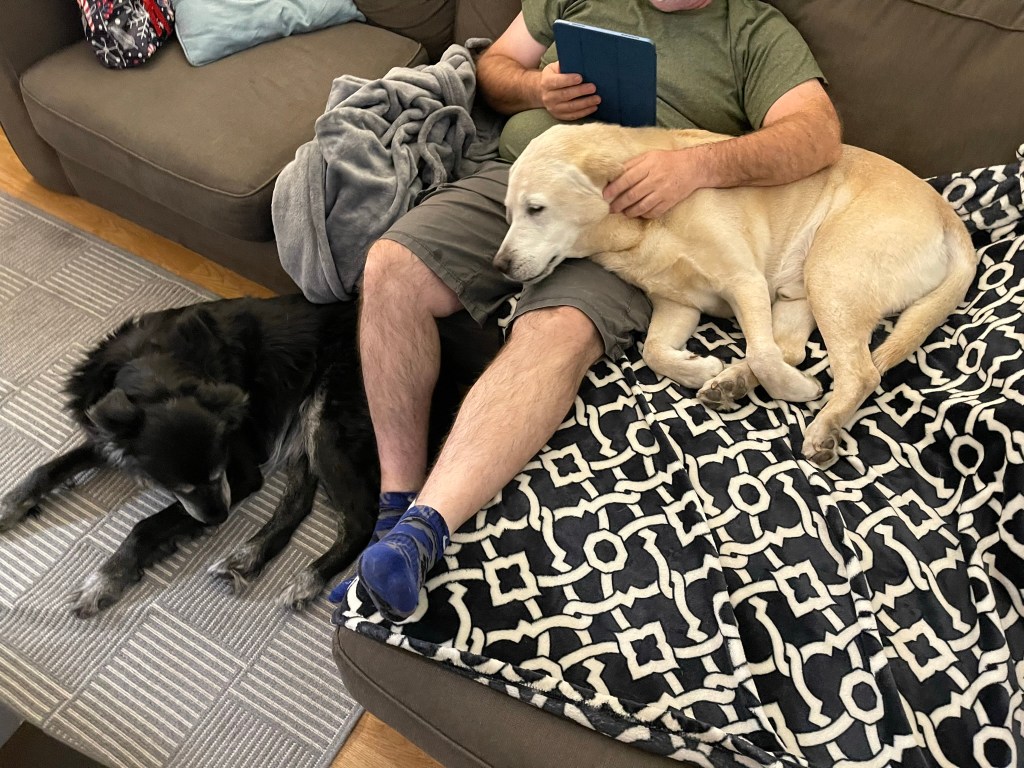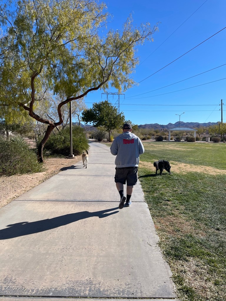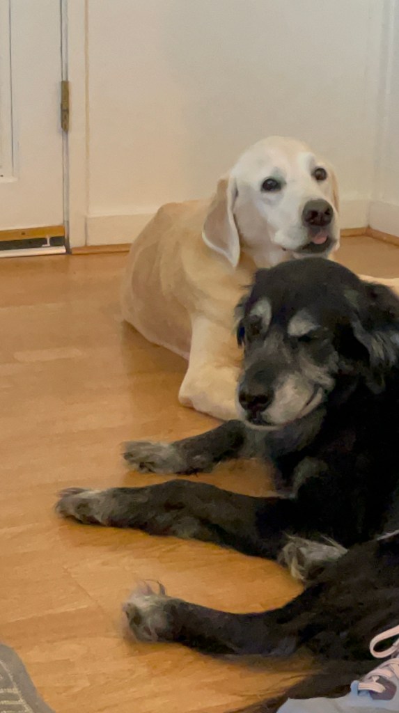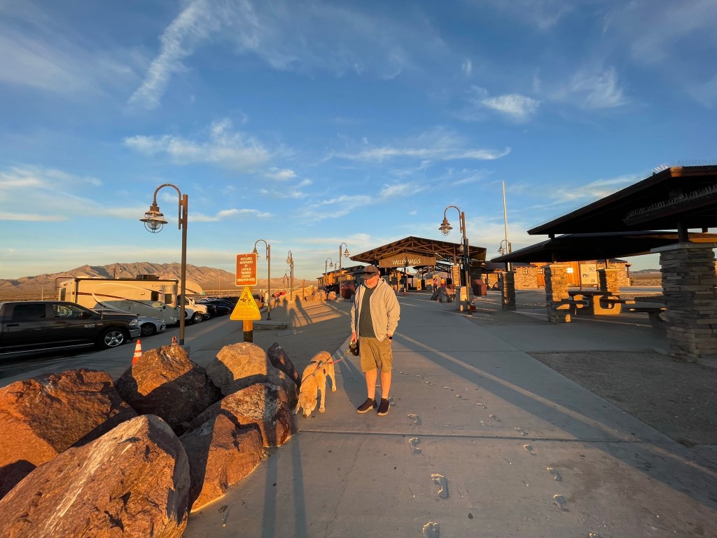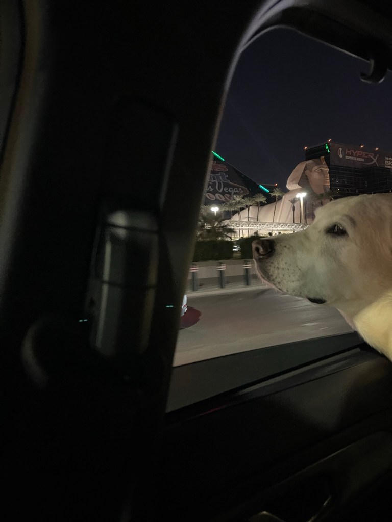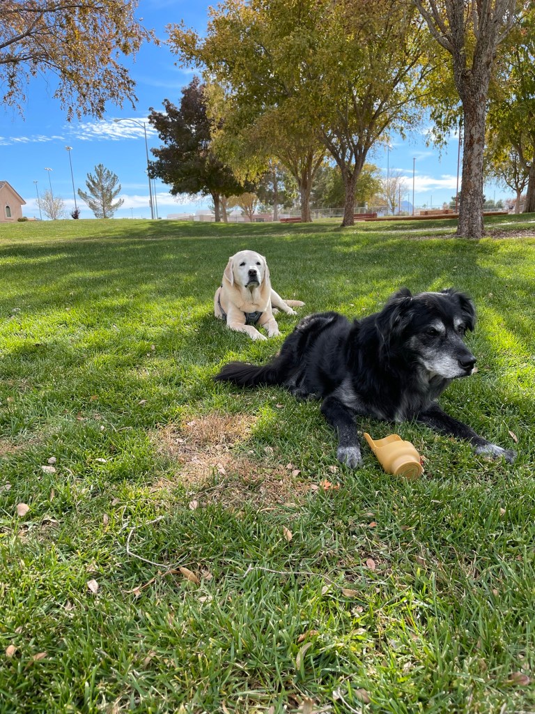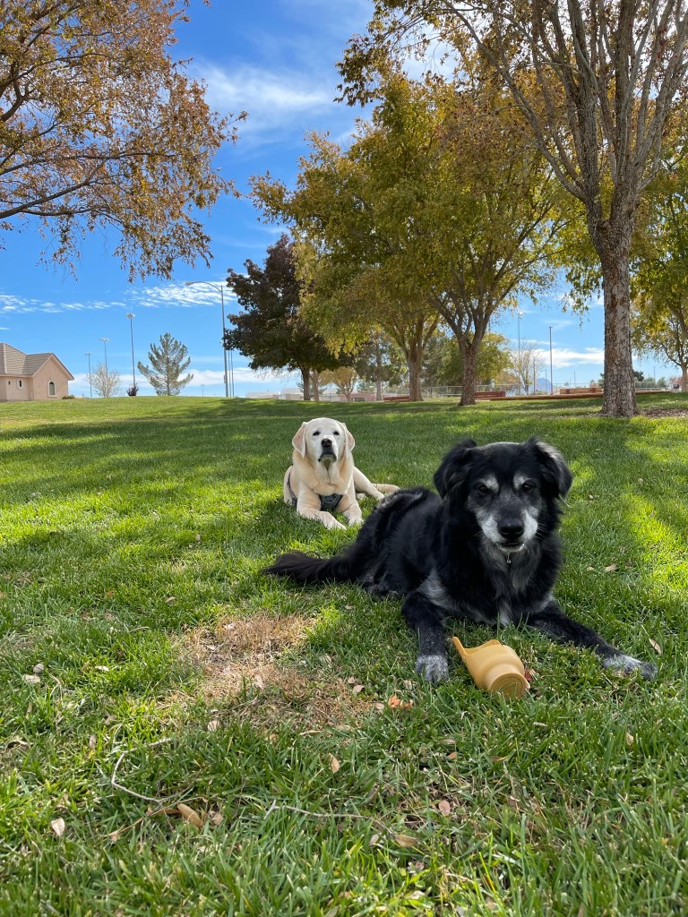 Moby reunited with old friend Billy in Henderson, NV. Travel by car can be tiring. Lots of rests at rest areas along the way. Lots of new smells and treats throughout.